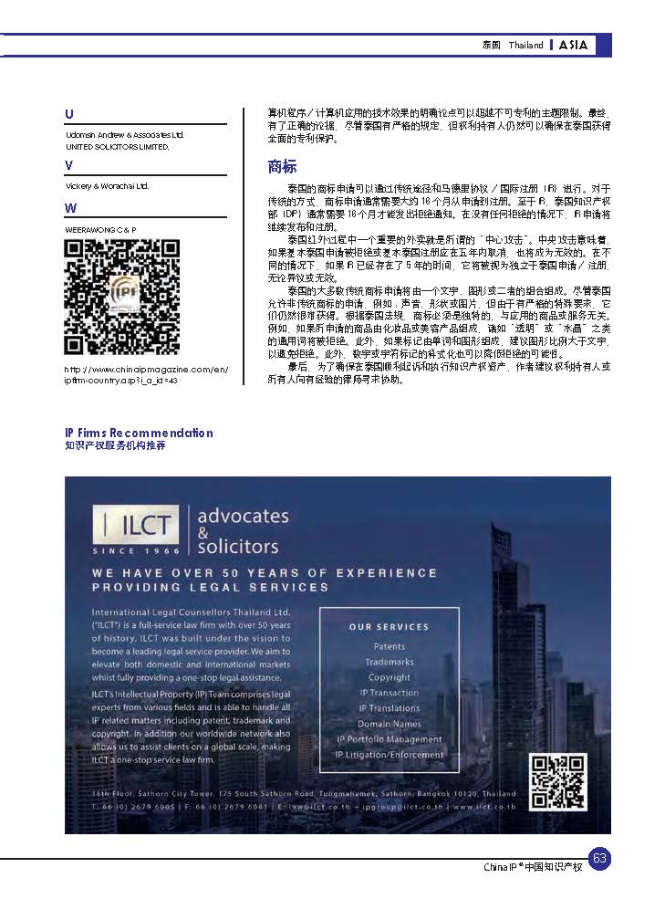 ILCT has been endorsed as Thailand’s recommended IP firm by China IP Magazine featuring an article on “Overview of Thailand’s IP System”.